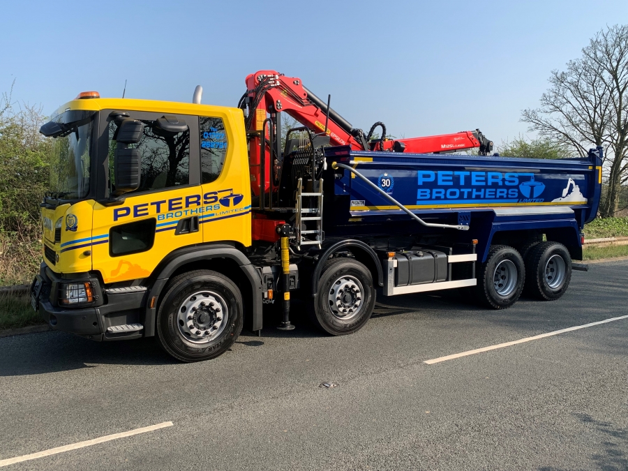 P450 SCANIA 8x4 automatic Grab Lorry fitted with an Epsilon m125 crane and clam shell bucket ,low chassis is 3 star dvs compliant